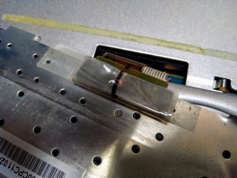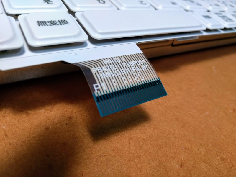 キーボードを慎重にペリペリと剥がしていくとフラットケーブルが見えてくるので断線しないように注意が必要です。