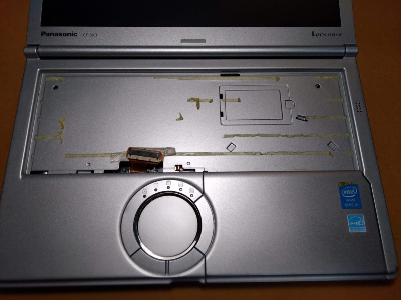 今回キーボード交換するレッツノートCF-SX3は本体とキーボードは両面テープで貼り付けただけの簡単な構造です。