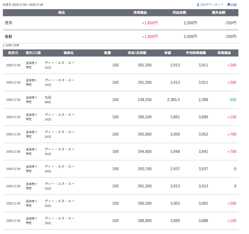 朝寄付後しっかり底値までみて、エントリーするも利確が遅すぎて結果100円だけの利益となる。買3888→売3889。3920円時点での利確迷ってるうちに利益欲張りすぎて買値割ってランデブー突入で戻り待ちとなって時間のムダ!損失ロスカットでの失敗だけでなく、利確伸ばして欲張りすぎるのも良くない!!