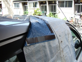 作り方は、レジャーシートに、磁石のシート状になったのをはりつけるだけです。よく、初心者マークなんかで車に貼り付けてるようなのとおなじですね。ハサミでチョキチョキ切れます。この磁石は100円ショップで買ってきたそうです。簡単ですが、効果バッチりです。