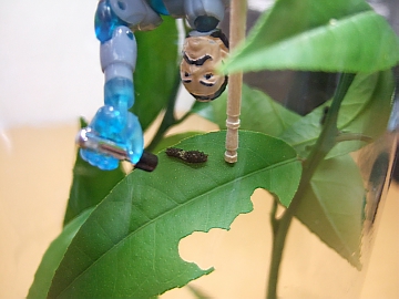 「こちらが、その問題のアゲハ蝶の幼虫たちです。」