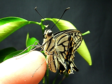 まだ、よく飛べないうちは、「手のりアゲハ」なんて、