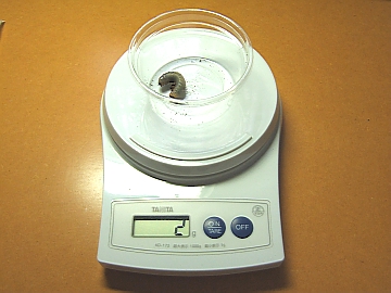 幼虫は、すべて初齢幼虫で、大きさも、ちょうど、大・中・小って感じでした。順番に大吉・中吉・小吉(そのままやん^^)と名前をつけることにします。体重も計ってみたんですけど、大吉の2g以外は、0gと計れませんでした^^。