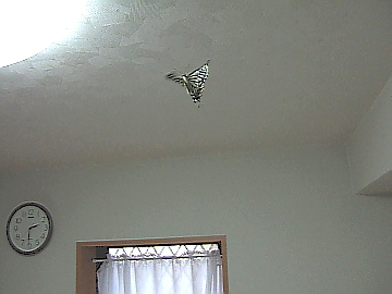 羽が伸びきったところで、アゲハ弟が舞い上がりました。