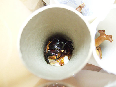 いやぁ、まぁ全部、人工蛹室での飼育に切り替えたらいいやぁなんて、のん気に構えてました。そうそう、トイレットペーパーの芯使って、人工蛹室を作ってやったらいいだからなんてね。そんで、家の中でトイレットペーパーの芯をさがしたわけですが・・・そんなもん急にあるわけないですよね。トホホです。