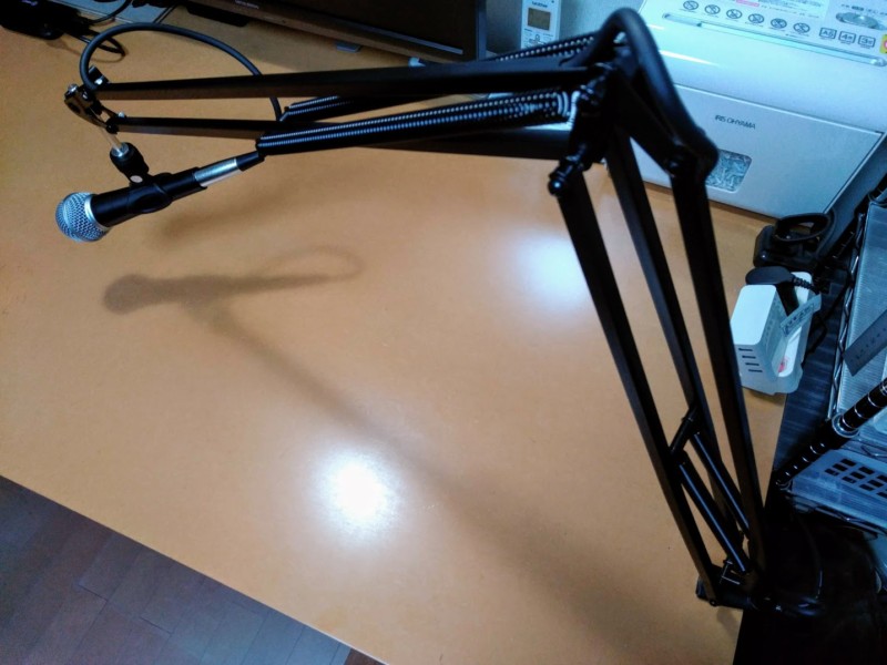 最初はマイクスタンドを使ってましたが、実況しない時にパソコン画面が見づらいのでマイクアームに変更しました。